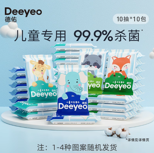 (特)德佑杀菌湿巾便携小包装学生儿童专用杀菌卫生不含酒精湿纸巾10包