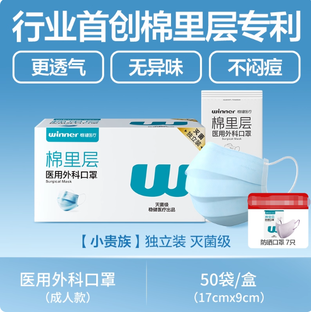 (特)稳健棉里层防尘医用外科口罩一次性医疗防尘防护高颜值灭菌独立装