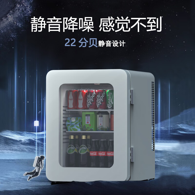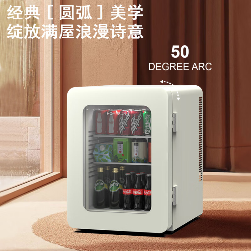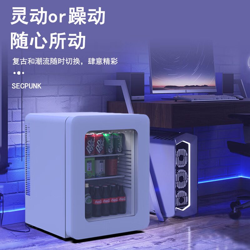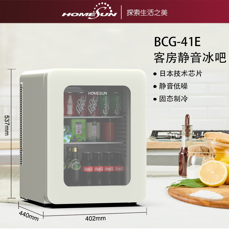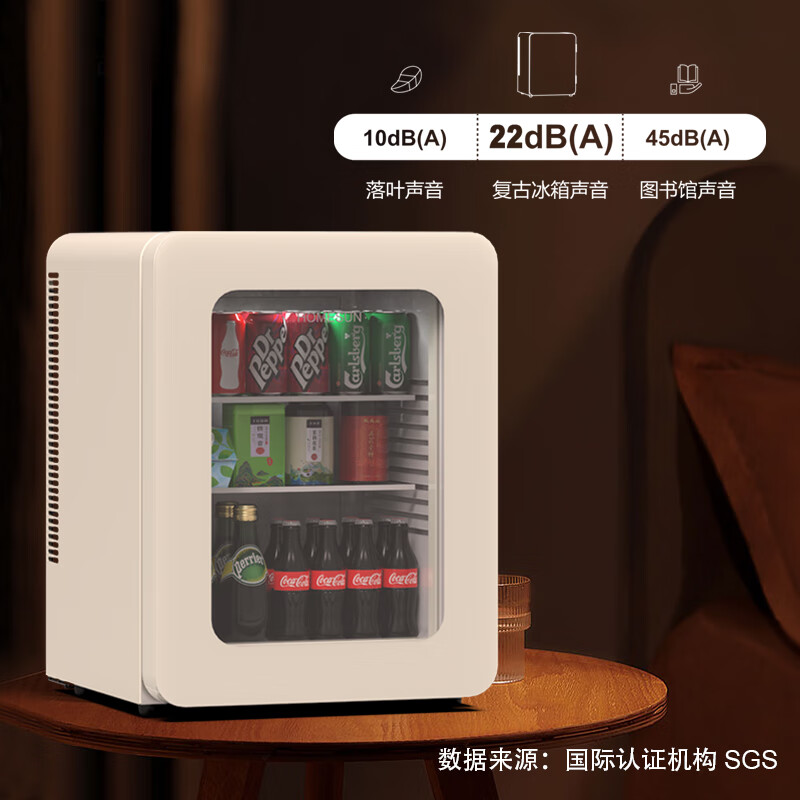 (特)奥达信【新品】复古小冰箱静音家用客厅桌面冷藏冷冻保鲜美妆冰箱迷你茶叶保鲜柜冰吧学生宿舍床头冰箱 BCG41E-奶油白玻璃门(静音款)