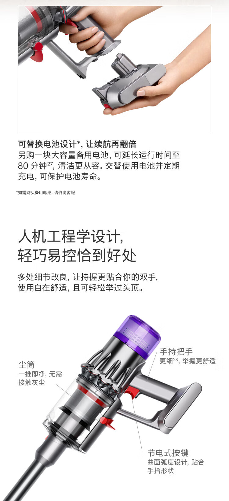 (特)戴森(DYSON)V10 Digital Slim 无绳吸尘器 铁镍色 手持无线吸尘器 除螨 宠物 家庭适用