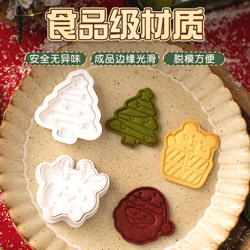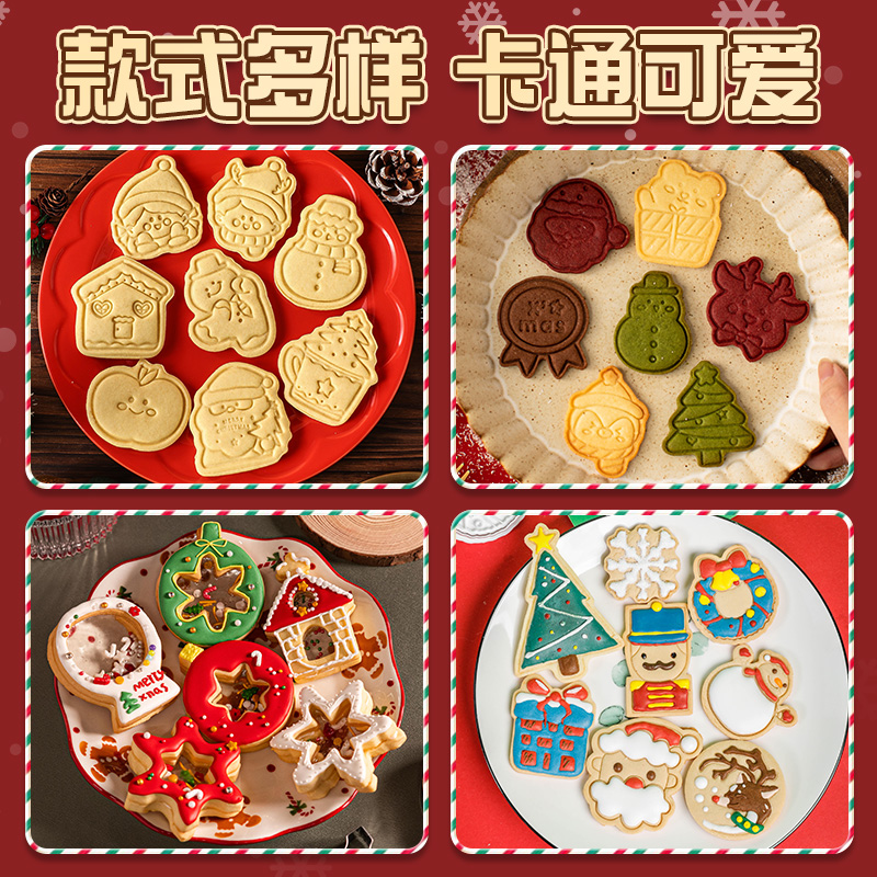 (特)圣诞节饼干模具糖霜手压式姜饼屋圣诞老人卡通烘焙工具3D立体diy