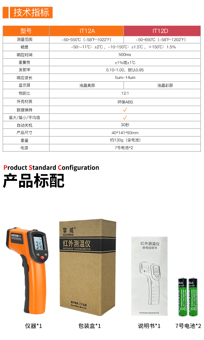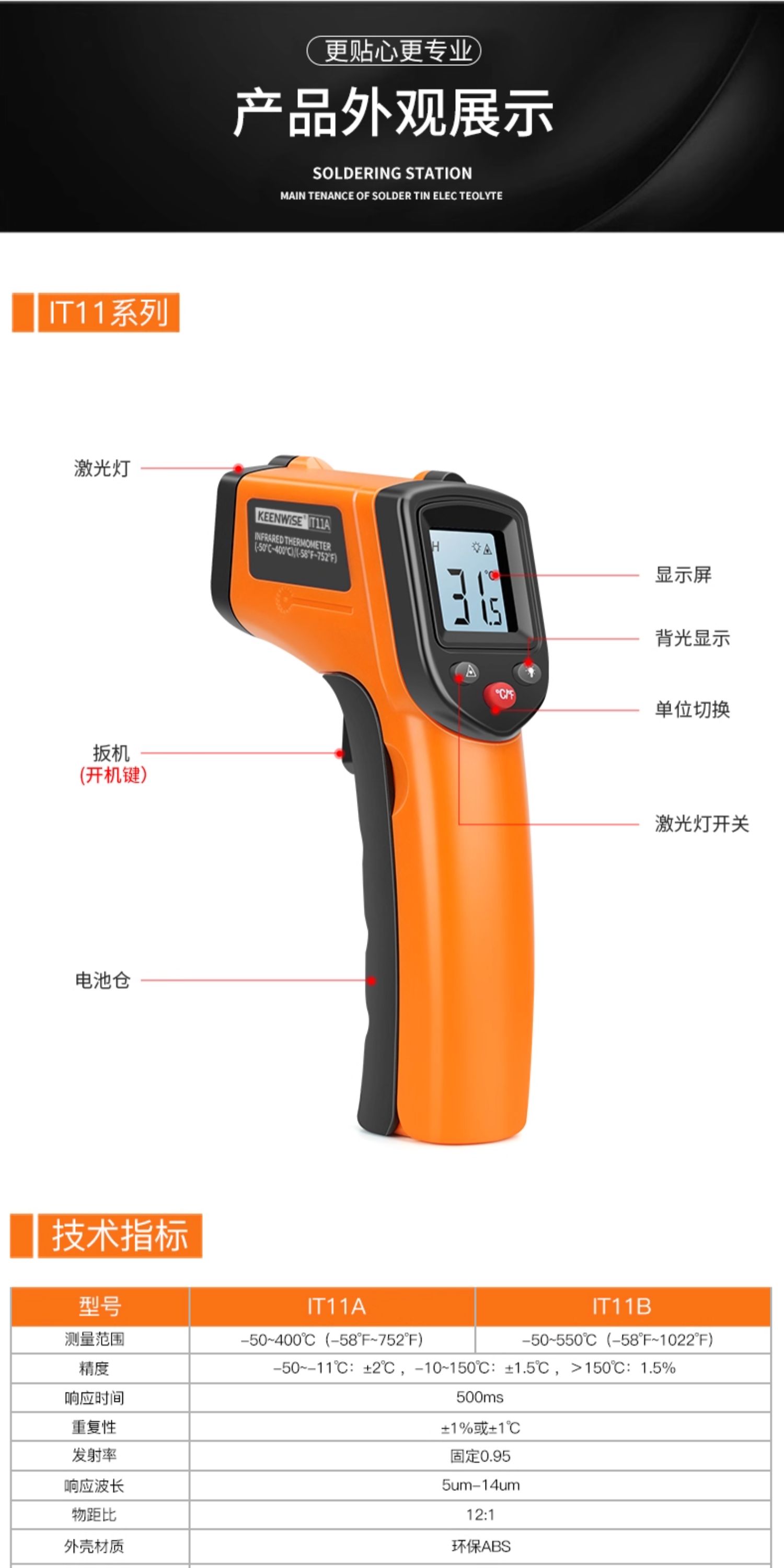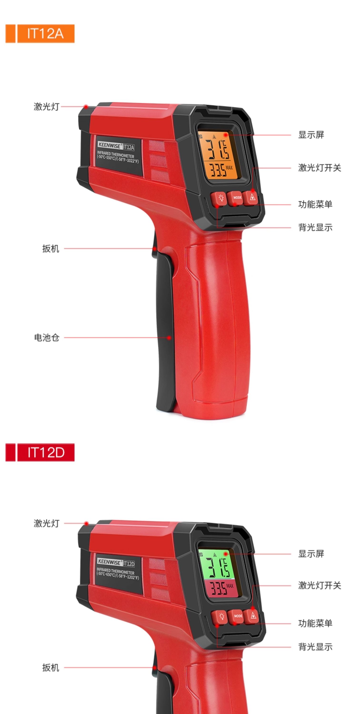 (特)擎威高精度红外测温枪空调出风口测温仪温度测量计油温枪厨房专用