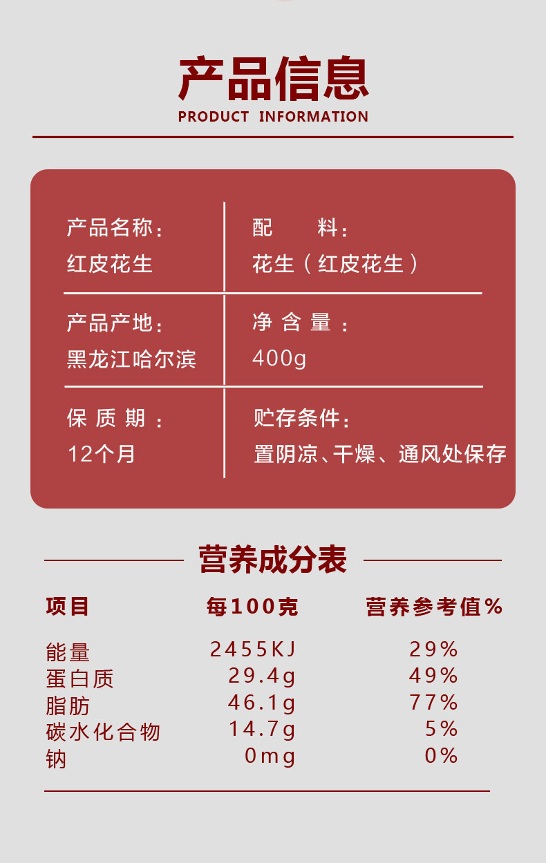 - 规格:【真空】红皮花生400g*5袋