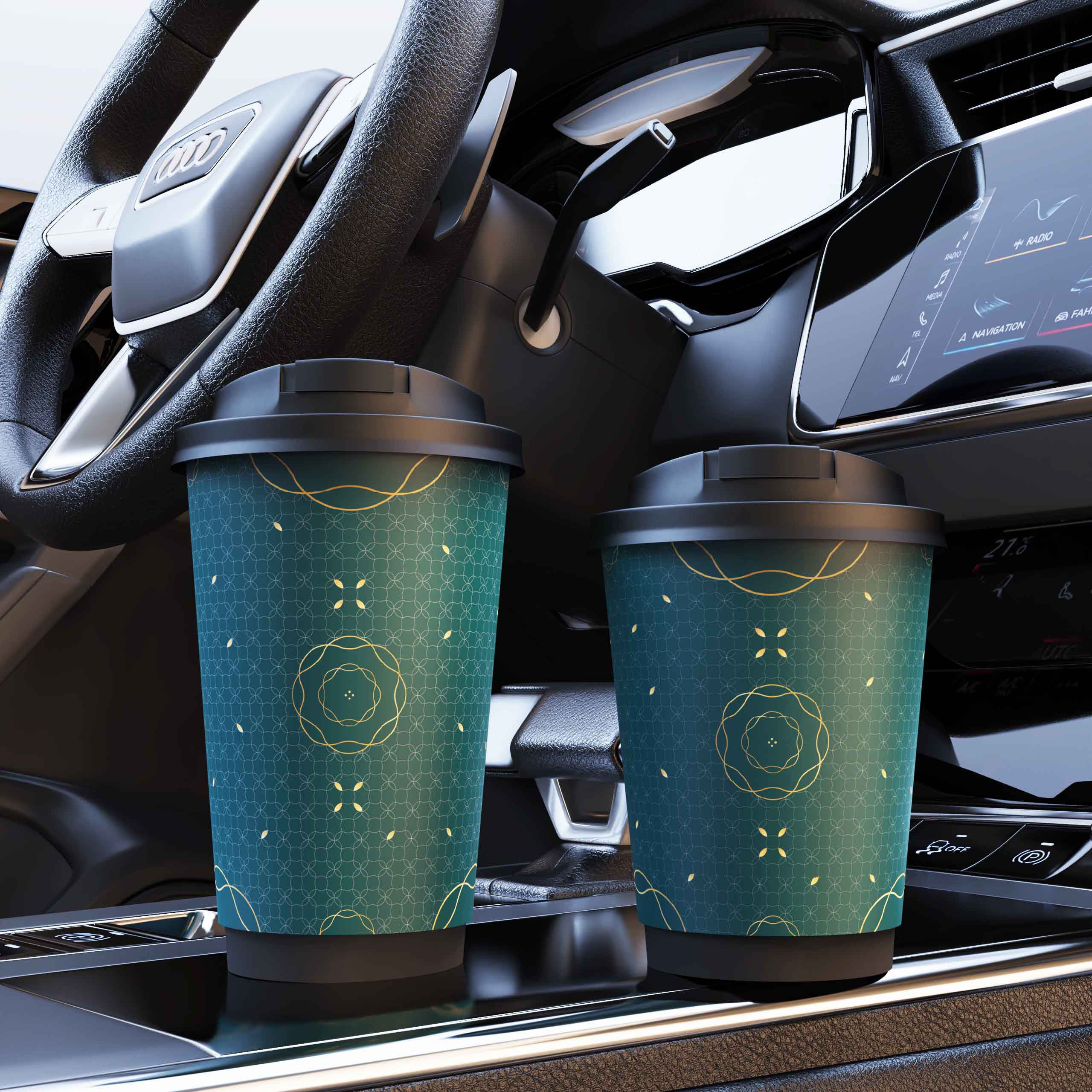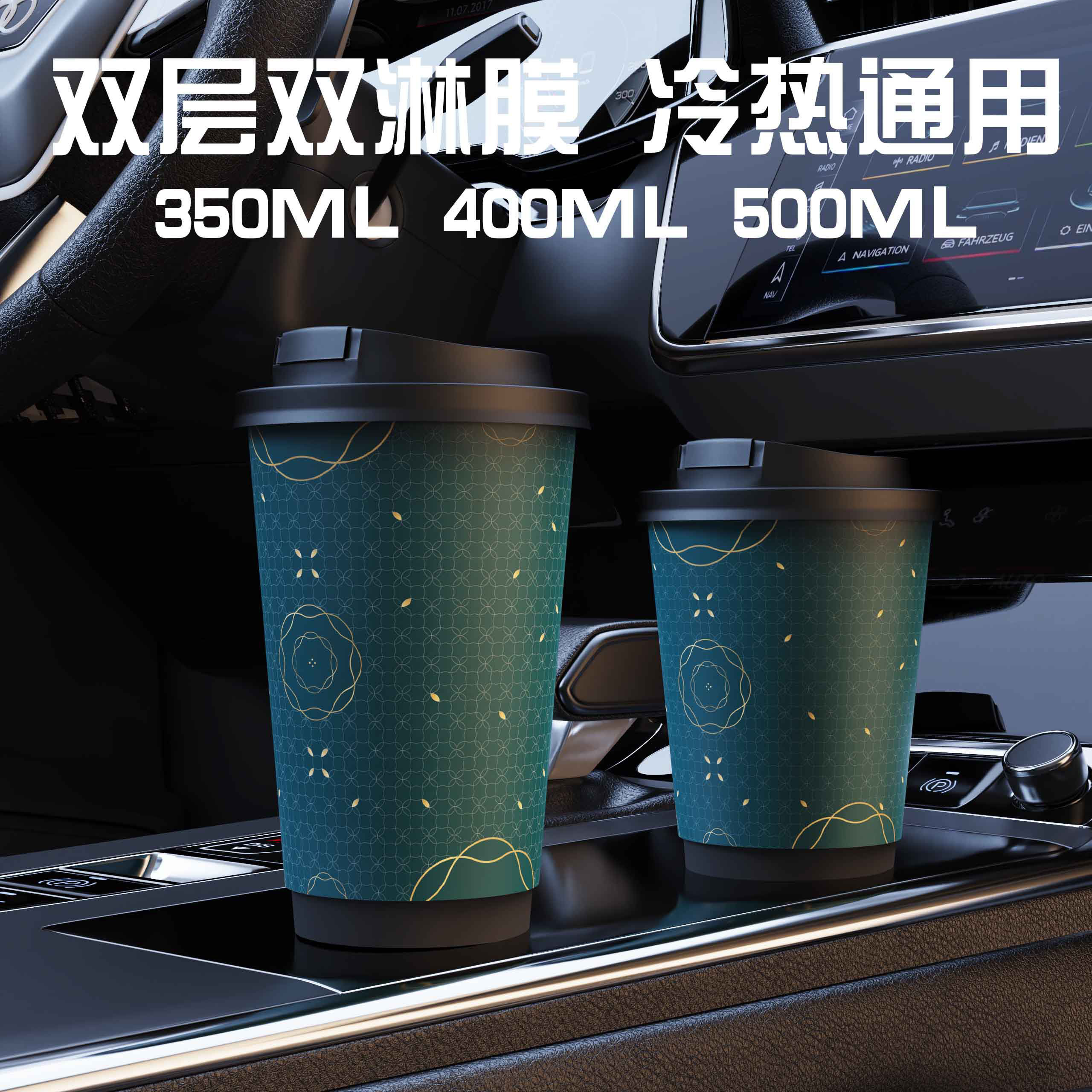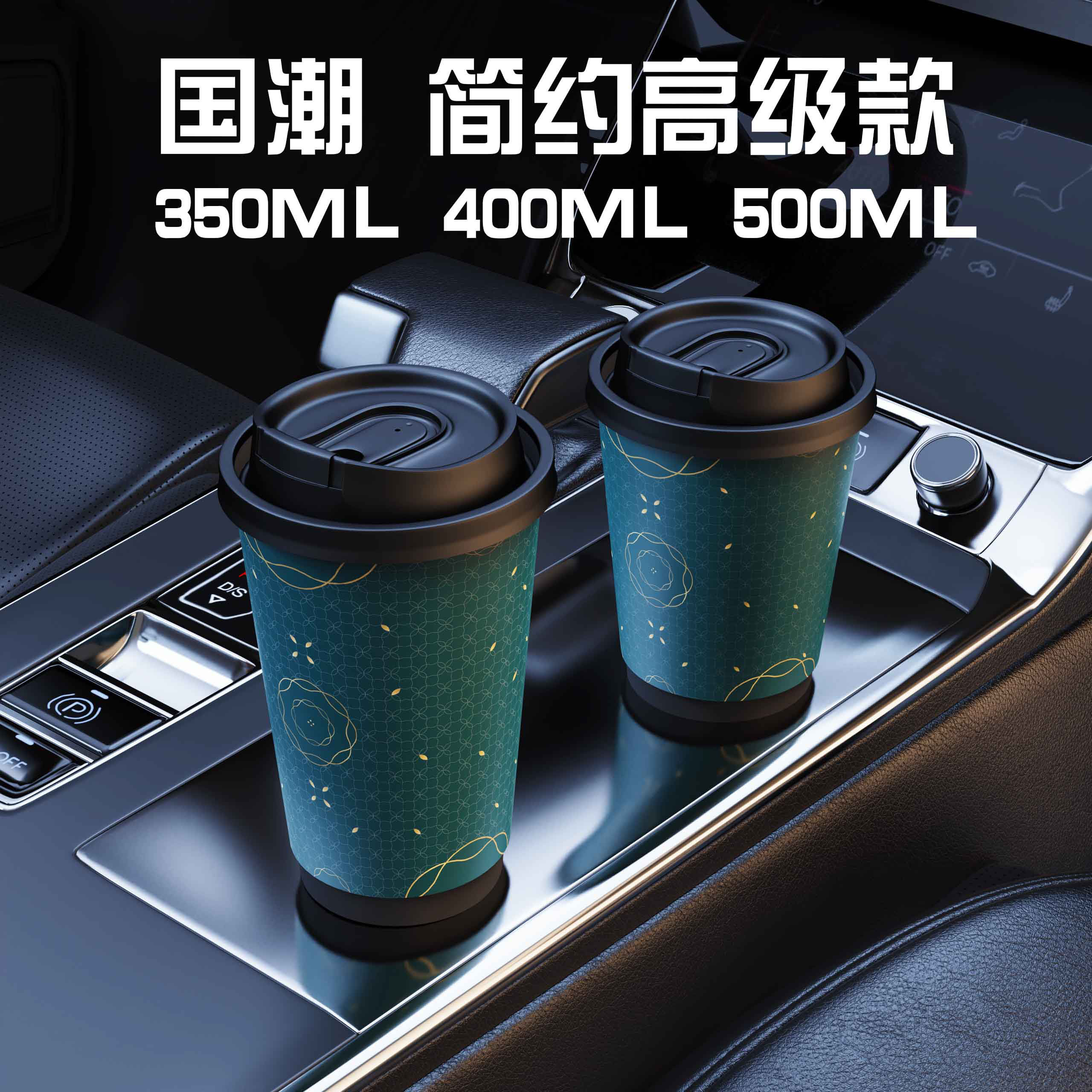 (特)国潮一次性咖啡杯带盖简约高级双层加厚防烫咖啡店专用商用定制