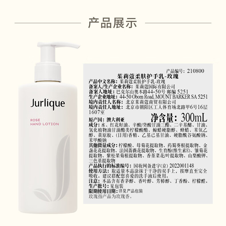 (特)茱莉蔻(Jurlique)玫瑰柔肤护手乳300ML