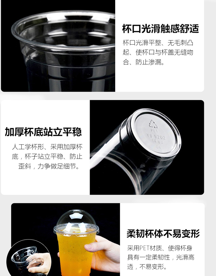 (特)一次性咖啡杯pet冷饮加厚高透拿铁美式商用带盖外带打包